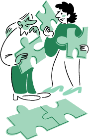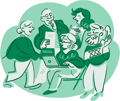 Vi har et sett med illustrasjoner som representerer foreningens verdier og tematikker. Illustrasjonene kommer i alle våre farger og skal kun settes på den lyseste nyansen av valgt farge. Illustrasjonene utgjør en kontrast til vårt ellers stramme og seriøse uttrykk. Bruk derfor illustrasjonene som et element for å gjøre flater mer livlige og gjenkjennelige.